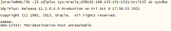 在搭建DG主备库验证时,主备库相互连接报错ORA-12543,如下图所示.