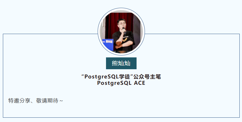 熊灿灿,“PostgreSQL学徒”公众号主笔、PostgreSQL ACE