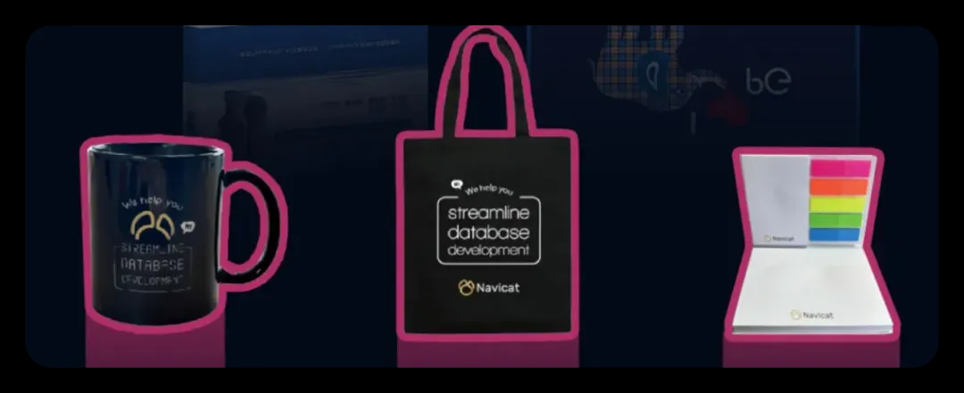 包括马克杯、帆布袋、便利贴,以及Navicat Premium 正版软件(三个月)