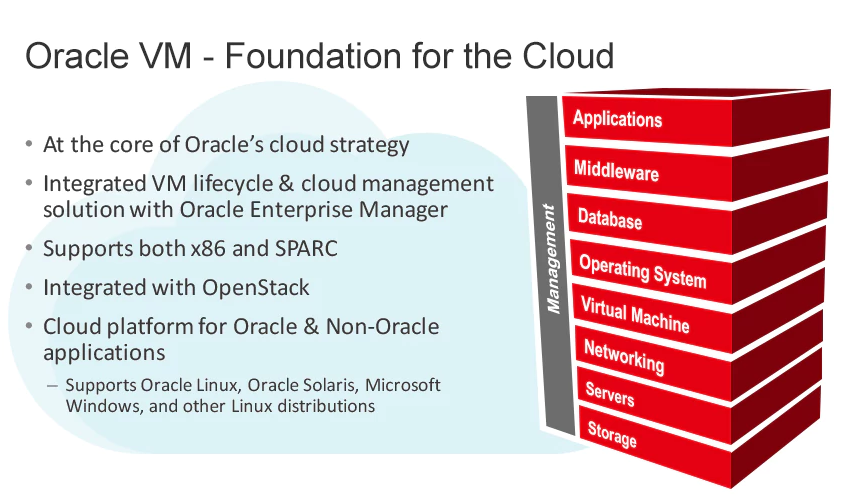开放的云基础设施 “从磁盘到应用再到云”的完全集成的企业管理 利用Oracle VM模板快速部署企业应用